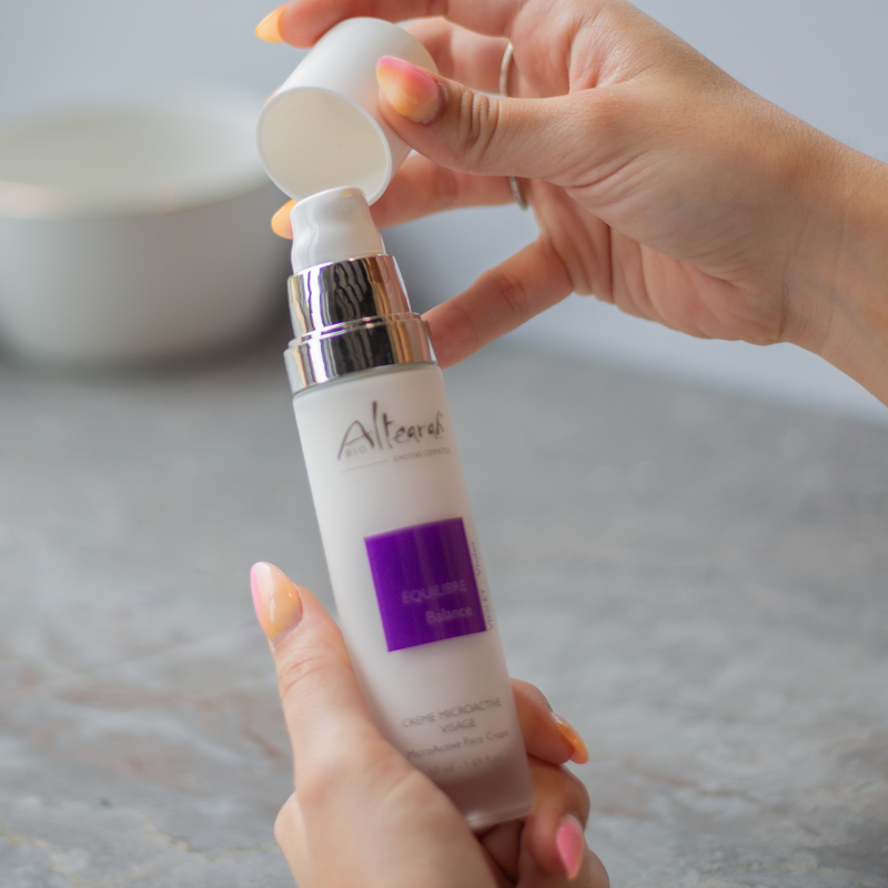 Les extraits marins Prébiotiques rééquilibrent le microbiote cutané, diminuent les rougeurs et imperfections et agissent sur l'éclat du teint.